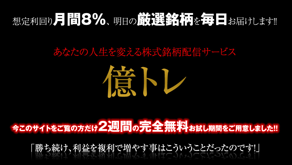14日間無料【ゴールドコース】億を狙い撃ちする株式トレーディングシステム「億トレ」月額会員制銘柄配信サービス